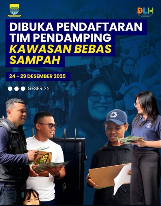 Dikutip Beritainspiratif.com di akun Instagram resminya @bdg.dlh Selasa (23/12/2025), Dinas Lingkungan Hidup Kota Bandung saat ini membuka kesempatan bagi Warga Negara Indonesia sebagai Tim Pendamping Kawasan Bebas Sampah, dengan Pendidikan minimal SMA/SMK hingga Sarjana (S1). Diutamakan jurusan Teknik lingkungan/Pendidikan/jurusan lain yang relevan.