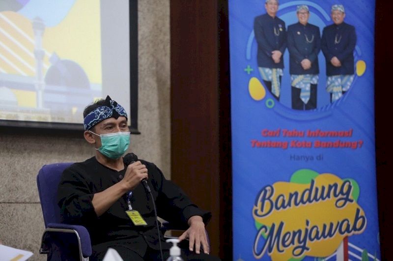 KEPALA Sub Bagian Tata Usaha UPT Penghijauan dan Pemeliharaan Pohon DPKP3 Kota Bandung, Mustofa saat acara Bandung Menjawab di Auditorium Balai Kota Bandung, Kamis (28/10/2021) / Foto: Humas Kota Bandung