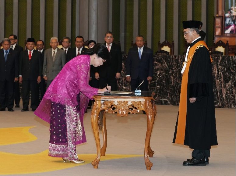 Filianingsih Hendarta usai mengucapkan sumpah jabatan sebagai Deputi Gubernur Bank Indonesia di hadapan Wakil Ketua Mahkamah Agung Bidang Yudisial, Dr. Sunarto, S.H., M.H. Selasa (18/4/2023) / Foto: Dok. BI