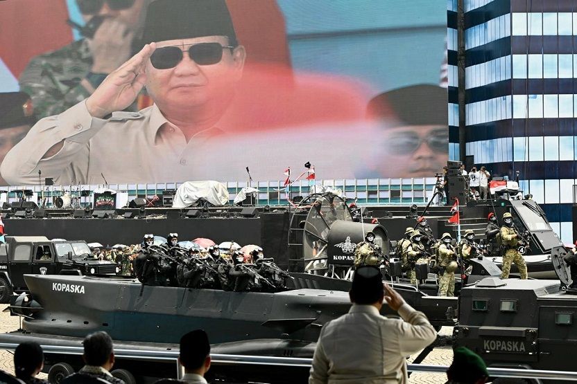 Dari mimbar kehormatan, Presiden Prabowo menyaksikan atraksi para prajurit. Kepala Negara tampak serius memperhatikan setiap manuver dan gerakan yang ditampilkan pasukan. Suasana Monas berubah menjadi panggung kolosal yang memadukan kekuatan darat, laut, dan udara.