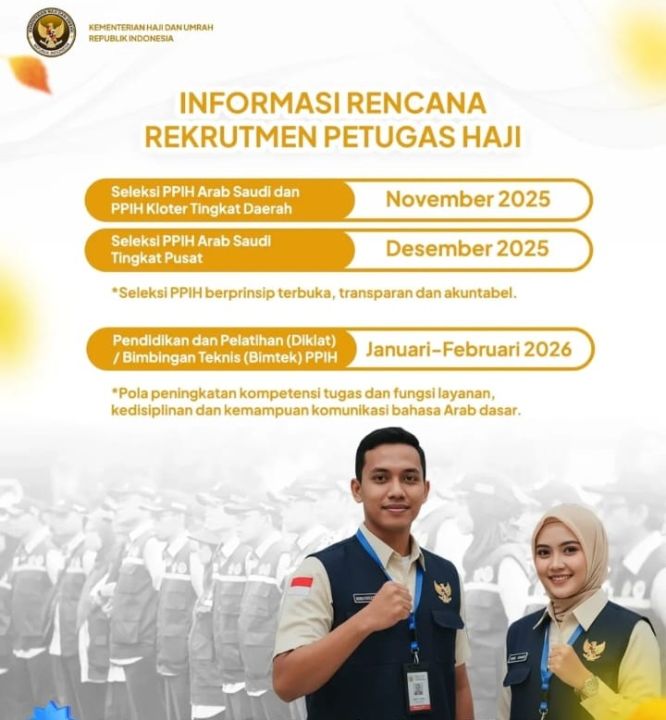 BERITAINSPIRATIF.COM - Kementerian Haji dan Umrah Republik Indonesia (Kemenhaj RI) akan membuka rekrutmen bagi Petugas Penyelenggara Ibadah Haji (PPIH) 2026 pada bulan November 2025.