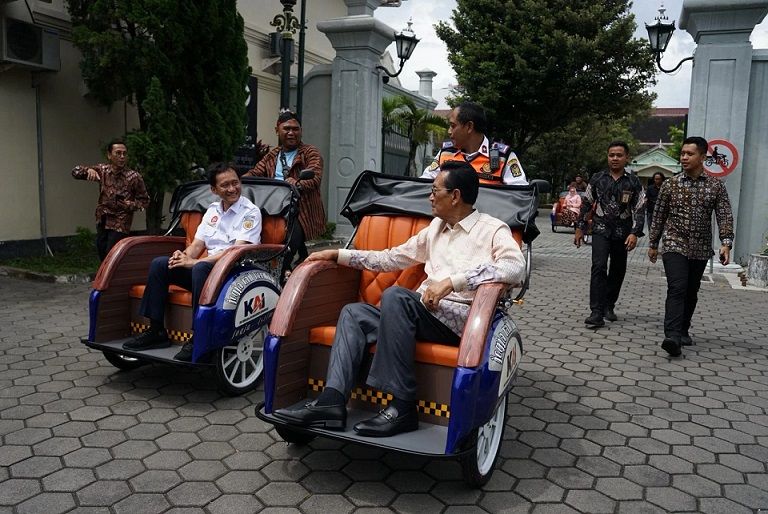 Direktur Utama KAI Bobby Rasyidin hadir dan menyerahkan bantuan becak listrik kepada Gubernur DIY, Sri Sultan Hamengku Buwono X untuk selanjutnya didistribusikan kepada para pengayuh becak tradisional di kawasan Malioboro dan sekitarnya.