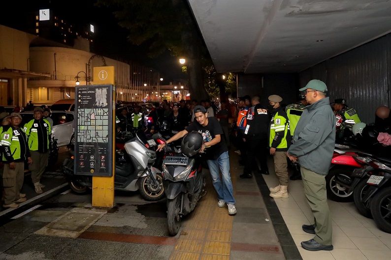 Dalam penertiban tersebut, petugas menemukan ratusan sepeda motor terparkir di atas trotoar, tepatnya di depan Gedung Merdeka. Kondisi itu dinilai melanggar aturan lalu lintas sekaligus mengganggu kenyamanan pejalan kaki.