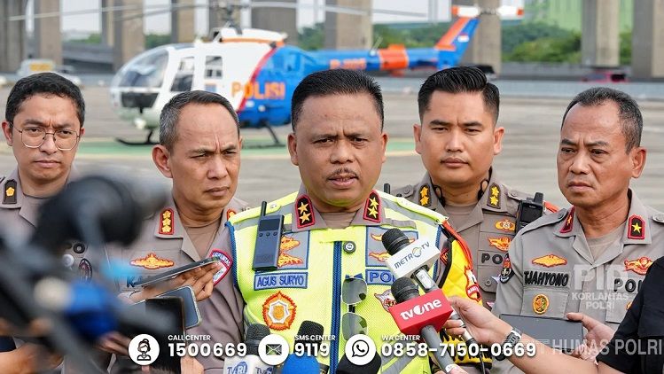 Kakorlantas Polri Irjen Pol Agus Suryonugroho saat memberikan keterangan Jumat (20/03/2026) siang di Command Center KM 29 Tol Jakarta–Cikampek / dok. Korlantas Polri